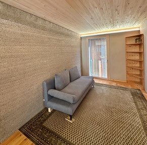 Hanfkalk vereint Holz- und Massivbau zu einem skalierbaren Hybridbau, der Leichtigkeit mit Masse kombiniert. Dadurch entstehen entscheidende Vorteile: erhöhter Brandschutz, verbesserter Schallschutz und eine wirksame Wärmespeicherung, die im Sommer für kühle Räume sorgt. Während leichte Dämmstoffe nur begrenzt gegen Hitze wirken, schafft Hanfkalk ein gesundes, behagliches Raumklima – ökologisch, effizient und für Projekte jeder Größe umsetzbar.